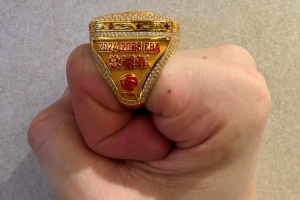 賽前,廣廈升起首面總冠軍旗幟,并頒發(fā)了總冠軍戒指。