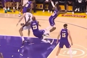 GIF-卡斯?fàn)栠\(yùn)球后撤步終結(jié)詹姆斯腳踝 后者摔翻在地