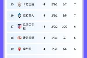 體育資訊11月6日訊 歐冠第4輪全部比賽結(jié)束,最新積分榜情況出爐。目前積分榜上,拜仁槍手國(guó)米全勝領(lǐng)跑!本菲卡阿賈克斯全敗墊底。
