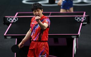 半決賽,張本智和將迎戰林詩棟和向鵬之間的勝者。