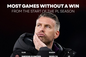 據媒體統計,狼隊本賽季英超前16輪比賽不勝,差1場追平謝菲聯2020-2021賽季創造的英超開局連續不勝紀錄。狼隊下場聯賽將對陣布倫特福德。