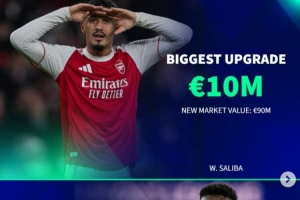 跌幅最大:薩卡,-1000萬(wàn)歐,1.3億歐