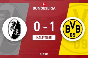 第31分鐘,多特前場任意球開到禁區,混戰中本塞拜尼搶射破門!多特蒙德1-0弗賴堡↓