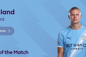 本場比賽哈蘭德梅開二度,賽后他也當選英超官方評選出的本場最佳球員。