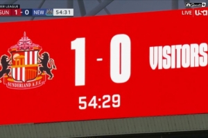 體育資訊12月15日訊 桑德蘭在本輪英超1-0擊敗紐卡,而現場畫面可以看到,桑德蘭沒有將死敵紐卡的隊名和隊徽放到記分牌上。