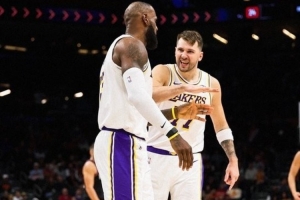 賽后,湖人發布贏球海報,東契奇和詹姆斯登上封面。