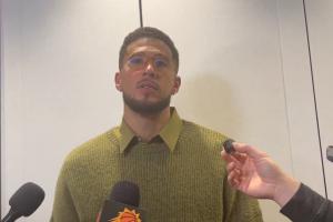 賽后,布克接受采訪時談到了自己對詹姆斯的關鍵三分犯規。