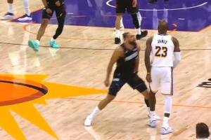GIF-社會龍與詹姆斯對撞,前者吃T