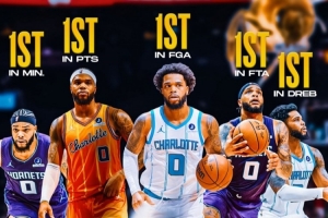 他在場均出場時間、總出場時間、總得分、場均得分、投籃出手?jǐn)?shù)、罰球出手?jǐn)?shù)、防守籃板總數(shù)等數(shù)據(jù)都是隊內(nèi)第一。