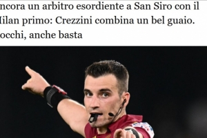 米蘭2-2薩索洛是克雷齊尼他執法的第七場意甲比賽,也是今年是第六場。他的經驗不足在這場看似平靜的比賽中表現得淋漓盡致,頻繁地吹錯哨并誤判犯規。在下半場,裁判組犯了一個嚴重錯誤。