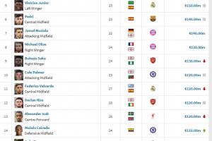 切爾西:帕爾默1.2億、凱塞多1.1億