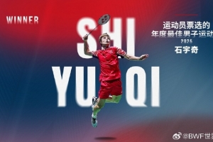 體育資訊12月15日訊 2025年世界羽聯(lián)年度最佳運動員獲獎名單公布,石宇奇當選運動員票選的年度最佳男子運動員。