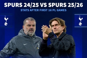 體育資訊12月16日訊 熱刺在本賽季英超表現低迷,新帥弗蘭克執教未能達到預期,《轉會市場》統計顯示熱刺的表現還不及上賽季同期。