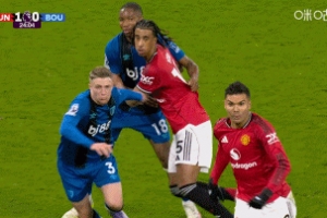 體育資訊12月16日訊 英超第16輪,曼聯(lián)主場(chǎng)迎戰(zhàn)伯恩茅斯,比賽第25分鐘,曼聯(lián)角球機(jī)會(huì)斯科特與卡塞米羅爭(zhēng)頂疑似手球,裁判沒(méi)有判罰。