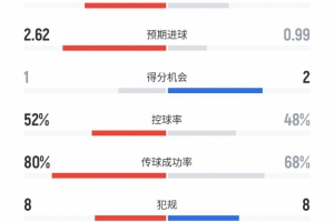體育資訊12月16日訊 曼聯(lián)對陣伯恩茅斯的英超聯(lián)賽正在進行中,曼聯(lián)半場2-1領(lǐng)先,以下是兩隊數(shù)據(jù)對比。