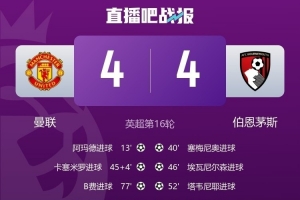體育資訊12月16日訊 在本輪英超聯賽中,曼聯4-4戰平伯恩茅斯,3次取得領先但最終依然沒能拿下勝利。