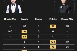 肖恩·墨菲打出單桿140分,劉宏宇打出一桿破百(117)和兩桿50+(88、74),雙方戰至決勝局,肖恩·墨菲以4-3的比分戰勝劉宏宇晉級32強。