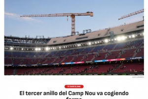 《阿斯報》表示,諾坎普球場的第三層看臺正在建設中,側門和南門區域的工程進展順利,預制混凝土板正在安裝中。新的看臺將比之前的看臺更高更陡,預計將于2026-27賽季完工,頂棚將于2027年底至2028年初之間完成,該球場翻新后預計可容納約10.5萬名觀眾。