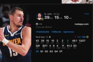 據數據媒體Real Sports統計,這是歷史上首次出現中鋒對決同場砍下30+三雙。