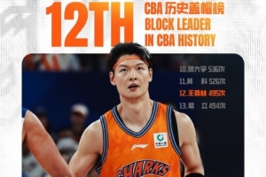 比賽進(jìn)行到第二節(jié),王哲林送出個(gè)人本場第2次蓋帽。至此,王哲林CBA生涯蓋帽總數(shù)上升至495次,超越易立的494次,升至CBA歷史蓋帽榜第12位!