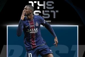體育資訊12月17日訊 2025年FIFA年度最佳頒獎典禮正在進行,巴黎圣日耳曼前鋒登貝萊當選2025年度FIFA最佳球員!