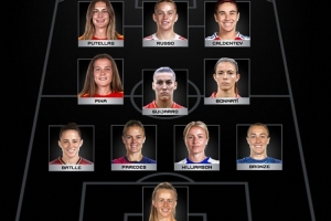 后衛(wèi):布隆澤(英格蘭/切爾西)、莉婭·威廉姆森(英格蘭/阿森納)、伊雷內(nèi)·帕雷德斯(西班牙/巴薩)、奧娜·巴特勒(西班牙/巴薩)