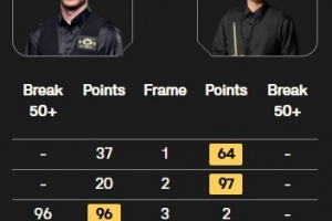 希金斯和羅伯遜單局打了37分鐘后一起去廁所,該局最終打了56分鐘
