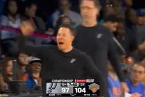 GIF-尚帕尼三分命中,但裁判吹進攻犯規