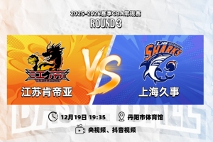 12月19日19:35,2025-26賽季CBA常規賽第三輪,江蘇肯帝亞將坐鎮主場丹陽市體育館,迎戰勁旅上海久事。