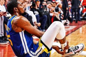 2019年NBA總決賽,效力于勇士的KD正與猛龍爭奪總冠軍。在之前的西部半決賽對陣火箭的系列賽中,杜蘭特小腿拉傷,并因此缺席了接下來的西部決賽和總決賽的前四場比賽。勇士陷入絕境,在總決賽中以1-3落后。外界的巨大壓力和球隊的危急形勢,共同促成了他G5的復出。但在比賽第二節(jié)杜蘭特無對抗倒地提前退賽。賽后核磁共振檢查結果確認,杜蘭特遭遇了右腳跟腱斷裂,賽季報銷。