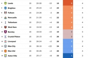 TA盤點(diǎn)了英超烏龍球另類積分榜,回顧了上賽季以來(lái)各隊(duì)產(chǎn)生的烏龍球情況(包括對(duì)手打進(jìn)的烏龍球)。因此,桑德蘭、伯恩利和利茲聯(lián)的數(shù)據(jù)來(lái)自上賽季的英冠聯(lián)賽。