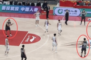 姜偉澤示意壓時間,摩爾指籃下要球的曾繁日 姜偉澤突然傳球給曾繁日扣空籃
