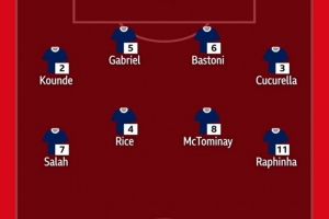 中場:薩拉赫(利物浦)、賴斯(阿森納)、麥克托米奈(那不勒斯)、拉菲尼亞(巴薩)