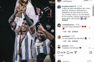 體育資訊12月19日訊 恩佐在Instagram發文,紀念阿根廷世界杯奪冠三周年。