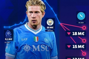 體育資訊12月19日訊 德國轉會市場預熱德布勞內最新身價,這位34歲的比利時中場身價確定下降。