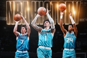 上半場黃蜂三分31中18,命中18記三分球追平了NBA歷史半場三分紀錄。