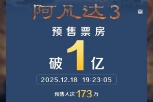 新浪微博消息,據燈塔專業版實時數據,上映前1天,《阿凡達3》預售總票房突破1億,預售人次達173萬人。