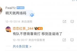體育資訊12月19日訊 昨日德杯第二賽段分組及賽程出爐,后續爆料人“戀戀紅茶”透露稱:有隊不想背靠背打,移到圣誕場了!