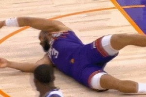 GIF-狄龍突破對抗波斯特上籃打進,噴裁判后腳一滑又摔倒