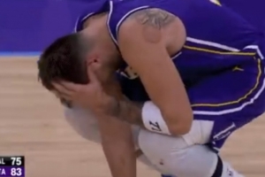 GIF-東契奇撲防底角三分被打到頭部