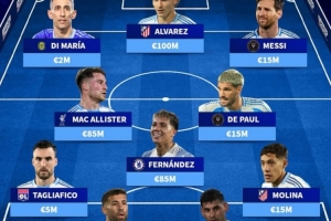 前鋒:迪馬利亞(羅薩里奧中央,200萬)、胡利安·阿爾瓦雷斯(馬德里競技,1億)、梅西(邁阿密國際,1500萬)