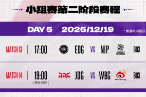 體育資訊12月19日訊 2025德瑪西亞杯第二階段比賽將在今日開始,首場17點(diǎn)EDG vs NIP,次場JDG vs WBG。