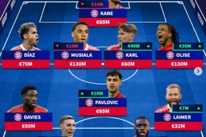 中場(chǎng):路易斯·迪亞斯(拜仁慕尼黑,7000萬(wàn))、賈馬爾·穆西亞拉(拜仁慕尼黑,1.3億)、亞歷山大·帕夫洛維奇(拜仁慕尼黑,6500萬(wàn))、倫納特·卡爾(拜仁慕尼黑,6000萬(wàn))、邁克爾·奧利塞(拜仁慕尼黑,1.3億)