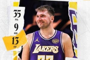 賽后湖人官方發布東契奇數據海報:“對于盧卡來說又一個表現出色的夜晚。”