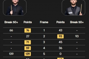 馬克·艾倫打出一桿破百(39)和一桿50+(66),喬·奧康納打出一桿50+(93),上半場結束艾倫3-1領先奧康納,最終馬克·艾倫5-2戰勝喬·奧康納晉級半決賽。