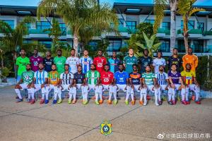 ???? 在非洲杯大合影中,剛果(金)國家隊(duì)球員身穿各自俱樂部球衣出鏡??