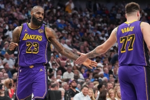 詹姆斯出戰(zhàn)的比賽,東契奇場均36.2分8.3板9.6助攻,真實(shí)命中率61%,勝率77.8%(7勝2負(fù));