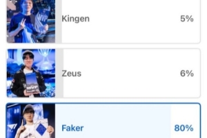 2.7萬人的投票中,DRX上單Kingen僅占5%,F(xiàn)aker高達(dá)80%