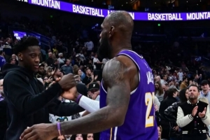 2026屆NBA選秀熱門球員AJ·迪班薩更新Instagram Story,曬出自己近日現場觀看爵士主場迎戰湖人比賽賽后與詹姆斯擁抱的照片。