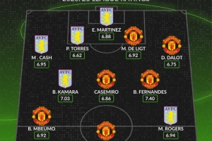 后衛:卡什(維拉,6.95分)、保·托雷斯(維拉,6.62分)、德里赫特(曼聯,6.92分)、達洛特(曼聯,6.75分)